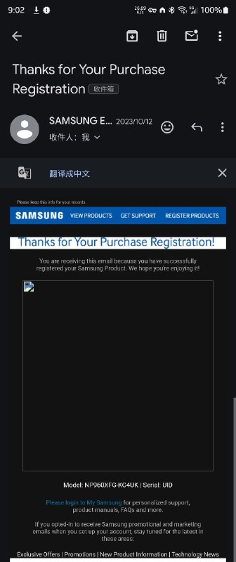忘了说了,如果你用Galaxy Book mask伪装后登录三星账号,三星官方会通过邮件感谢你购买了Galaxy Book,可我没买为什么要感谢我,三星真客气。